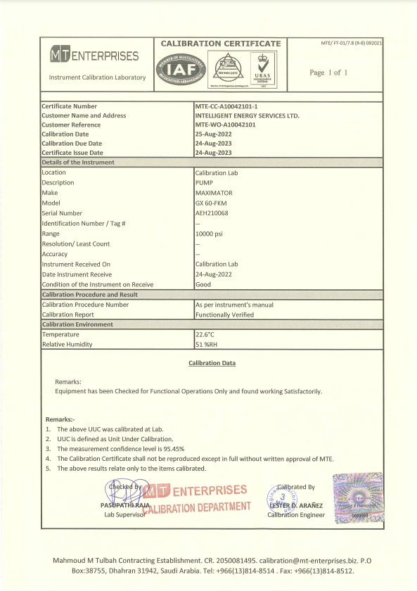 7. Calibration certificate: MTE-CC-A10040440-5_Digital Pressure Gauge Calibration Certificate (05. July 2022)